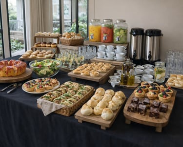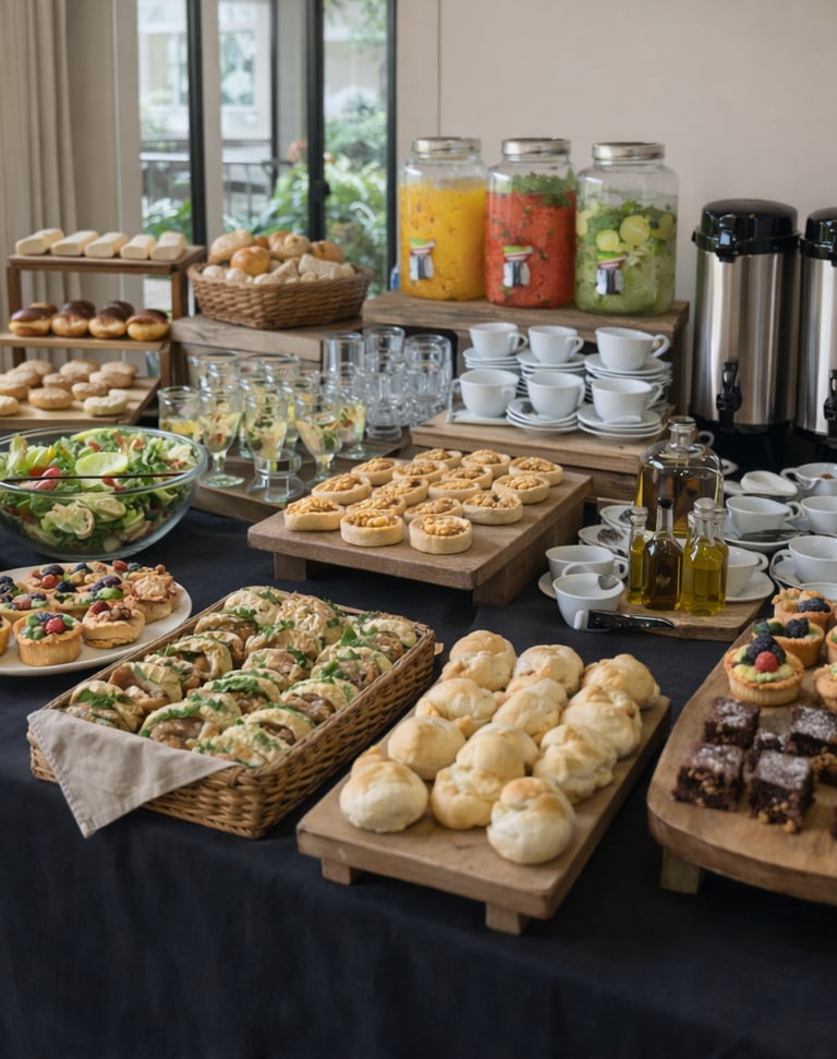 • Mini sanduíches gourmet: recheios variados como carne louca, pasta de ricota com ervas e frango desfiado com creme de milho.